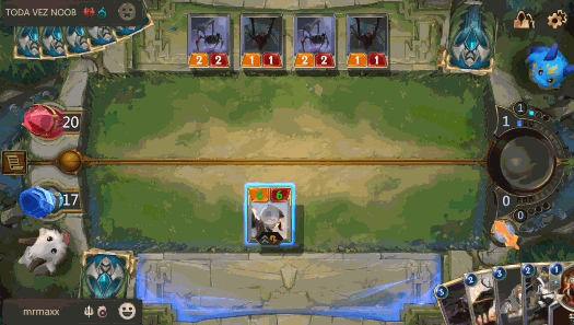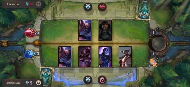 首先要介绍的是《符文大地传说》的核心玩法:对局系统。在战斗中,敌我双方会有20点初始生命值谁先将对手的生命值降低为0,谁则获胜