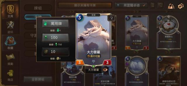 降低对手生命值的方法可并不是脸贴脸肉搏,而是要玩家们充分发挥谋略能力,凭借一张张卡牌攻击敌人。卡牌分为两大类:单位法术。以“大力魄罗”为例,这是一张单位牌,他具有3点攻击力3点生命值,因此将它上阵后,它便有可能对对手造成3点伤害