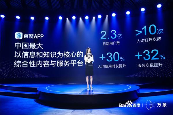 据百度副总裁、百度App总经理平晓黎介绍,百度App日活目前已突破2.3亿,人均使用时长增长30%,服务次数增速超30%;百家号的原创内容增长了122%,百万粉丝作者增长98%;智能小程序的月活用户数也达到5亿。