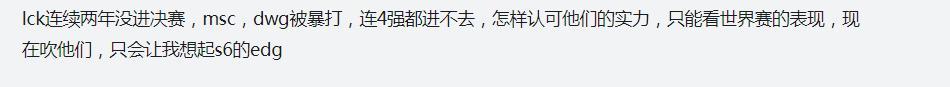 虽然cvmax放低姿态,但LPL的粉丝却不乐意了。把DWG排到世界第一,那LPL的队伍又该在什么地方?尤其是在MSC上,两个赛区开启线上赛,LCK的晋级的队伍就只把状态低迷的IG挤出小组赛,并且DWG接连被TES和FPX击败,连小组赛都没进,又如何能称得上世界第一呢?