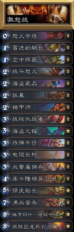 在低迷了几个版本之后,战士终于迎来了崛起的时机。接连的几波削弱让不少天梯的主流卡组强度都有所削弱,而战士受到的影响微乎其微。今天给大家分享一套,外服的传说第6激怒战卡组,希望能够对正在冲传说的玩家们有所帮助。