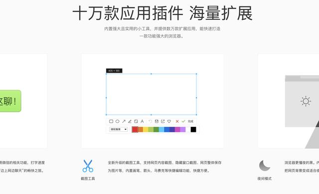 QQ浏览器PC版使用的是开源的Chromium内核,也就是说支持Chrome浏览器的所有插件。在官网上,我们也看到腾讯介绍QQ浏览器PC版支持“十万款应用插件”。